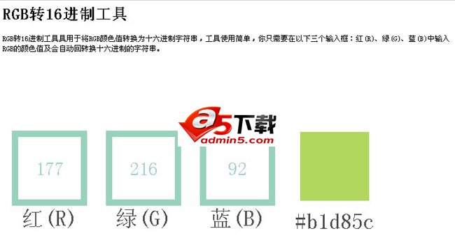 RGB转16进制工具用于将RGB颜色值转换为十六进制字符串,工具使用简单,你只需要在以下三个输入框:红(R)、绿(G)、蓝(B)中输入RGB的颜色值及会自动回转换十六进制的字符串。
