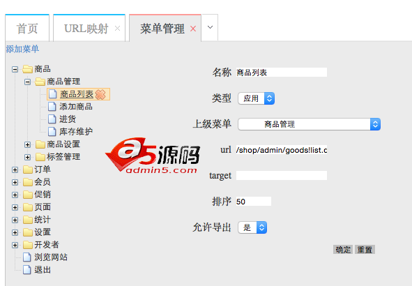 站点后台基础功能:后台登陆、后面界面展示、后台菜单管理