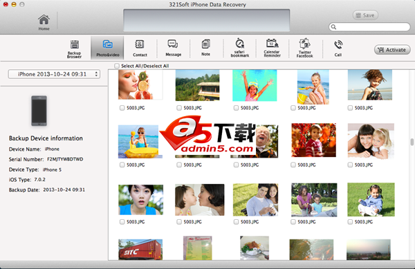 321Soft iPhone数据恢复可以恢复四种媒体文件类型: