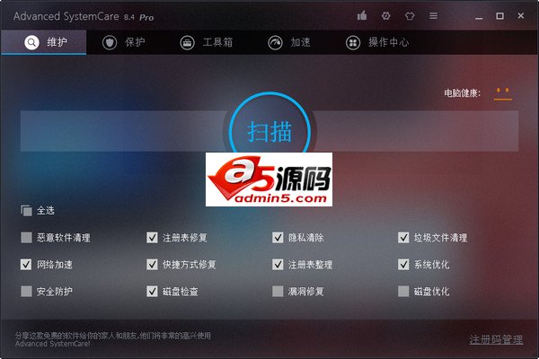 此外它还具有间谍软件和恶意软件扫描清除功能,也能将你的隐私信息从电脑中抹除。针对个人免费使用。Advanced WindowsCare Personal已更名为Advanced SystemCare。