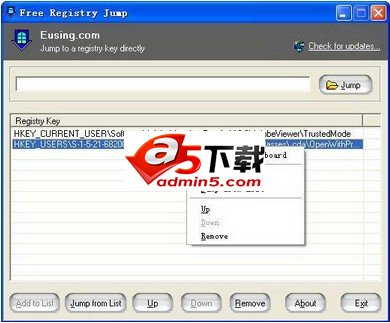Free Registry Jump可以立即跳转到特定的注册表项或值,免费注册表跳使您可以轻松地导航到您指定的或将其添加到列表中的注册表项。