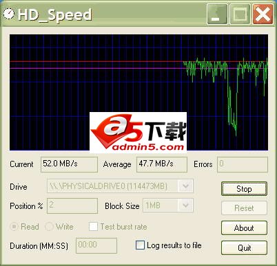 HD Speed是即时硬盘传输速率分析工具,以图形显示状态,还可检测软盘、DVD、CD传输速率。
