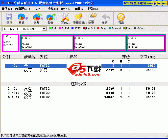 Partition Table Doctor这件恢复工具能自动地检查你的硬盘分区表,修理分区表错误。它允许你设置分区表的每个参数,也让你查看在活动中的分区,隐藏分区,扫描分区,重建 MBR(Master Boot Record),设置硬盘的口令
