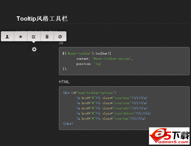 Tooltip风格工具栏是一款基于jquery+css3实现的Tooltip风格工具栏特效。