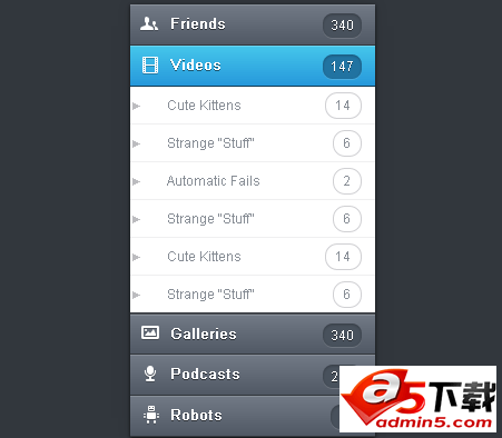 css3树形展开导航是一款纯css3实现的垂直下拉导航菜单。