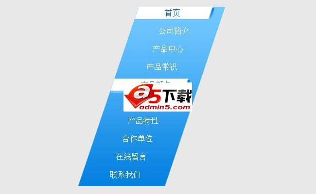 脚本简介jquery竖直倾斜导航是一款通过鼠标悬停导航条触发hover事件,导航条背景滑动显示。