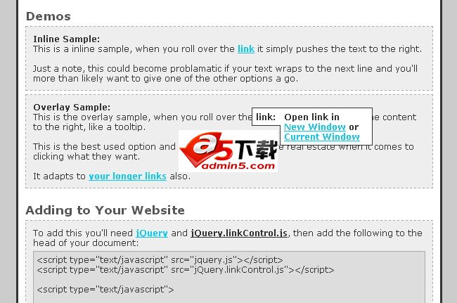 脚本简介jQuery超级链接打开效果是一款点击超级连接后会弹出一个选择框,让用户选择是在当前页面打开还是在新窗口打开,功能简单实用,调用方便。