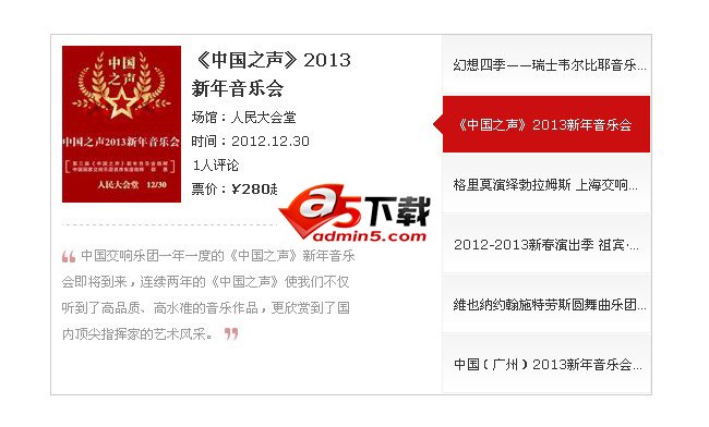 图文混排tab选项卡是一款基于jquery实现的仿大麦网图文混排的左右tab选项卡效果。