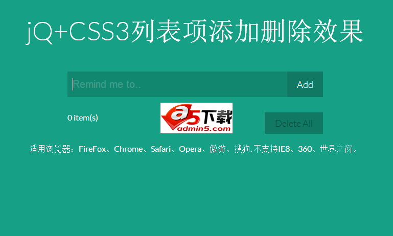 jQ+CSS3创意动画添加删除效果是一款基于jquery+css3实现的创意动画列表项添加删除效果。