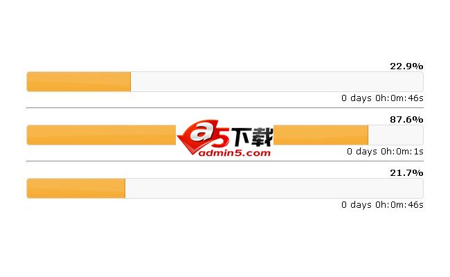 漂亮的jQuery橙色进度条插件是一款可以很容易的实现动态进度条,可以设定进度条走动的速度,可以限定时间,使用非常方便,效果也超酷。