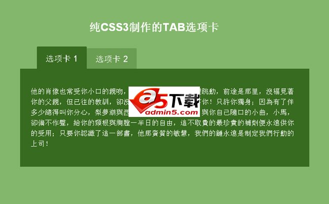 纯CSS3实现TAB选项卡切换是一款带有淡入淡出渐变效果的CSS3标签选项卡特效。