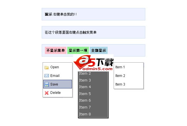 jQuery鼠标右键弹出菜单选项是一款jquery contextmenu鼠标右键点击页面弹出菜单选项代码。