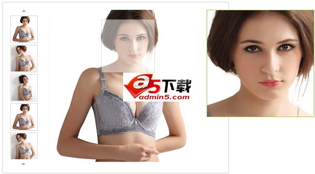 JS产品图片局部放大代码是一款鼠标移到产品图片上可局部放大,点击图片可浏览完整产品大图,鼠标移动到左侧箭头可上下滚动缩略图。