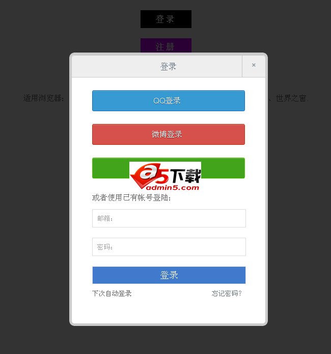 js带遮罩弹出层登录注册表单是一款带遮罩层 带可关闭的功能 弹出层 登录表单 注册表单 找回密码表单的jquery特效。