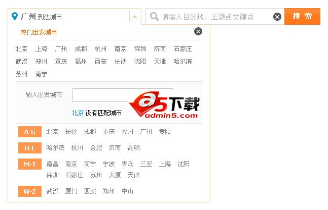 jquery下拉选择城市插件hhDrop是一款点击表单下拉选择城市,带关闭按钮,搜索框。