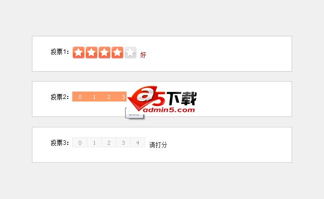 点击鼠标评分效果是一款带有三种打分效果,实用简单代码非常少便于修改。