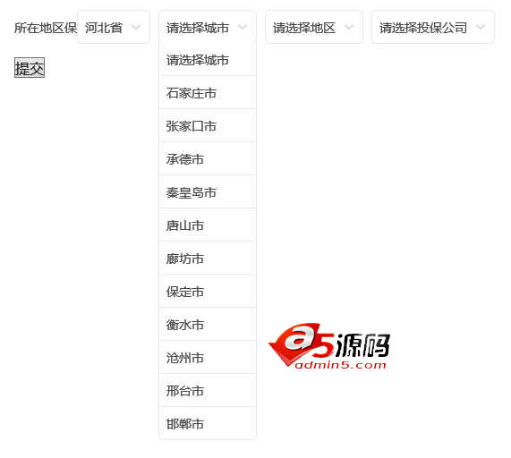 jQuery省市区四级联动菜单基于jquery-1.8.0.min.js制作,可进行省市区、投保公司四级联动选择。