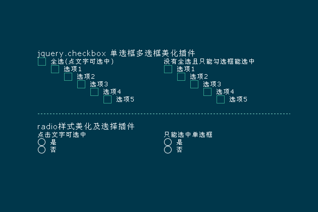 效果描述: 基于jQuery的一款插件,可以让你的input输入框 无论是单选还是多选,都实现的很漂亮 使用方法: 1、将CSS样式拷贝过去 2、将index.html中的代码部分拷贝过去即可 (注意保持文件路径正确)