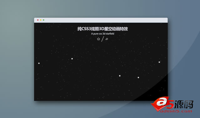 这是一款使用纯CSS3制作的炫酷3D星空动画特效。该特效中,以飞船向前快速移动为视角,所有的星星都快速的变大并向后移动,效果非常逼真。