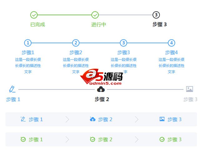 脚本简介基于VUE步骤进度条样式代码是一款响应式带图标的步骤进度条代码。