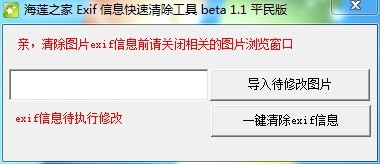 海莲之家 Exif 信息快速清除工具 beta 1.1 平民版,一键清除照片的exif信息。