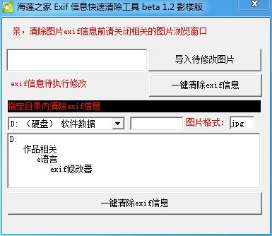 海莲之家 Exif 信息快速清除工具 beta 1.2 影楼版,访款是适合大量需要删除照片exif信息的美工设计人员。