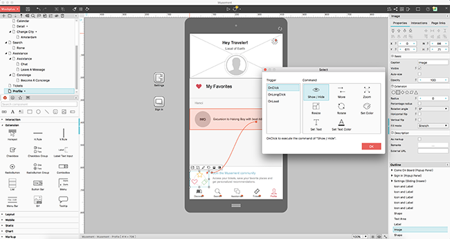 Mockplus中的原型交互设计完全可视化,所见即所得。拖拽鼠标做个链接,即可实现交互。同时,Mockplus封装了弹出面板、内容面板、滚动区、抽屉、轮播等系列组件,对于常用交互,使用这些组件就可快速实现。