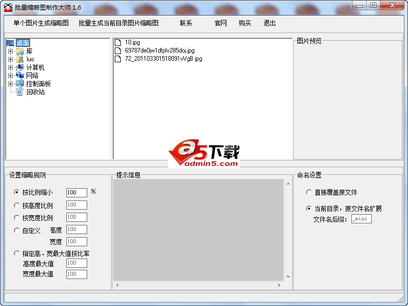 批量缩略图制作大师是一款制作缩略图的利器。具有方便、快捷、针对性强的特点。支持多种图片格式,可批量输出缩略图,可自行设定输出压缩参数。效率高,性能稳定,操作方便灵活。