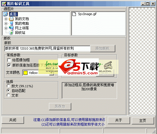 图片标识工具是一款为您的图片添加版权和边框的工具。