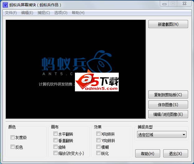 蚂蚁兵屏幕捕快(原屏幕捕快)是一款简洁易用的屏幕捕捉软件,能够让您得心应手地捕获到需要的屏幕截图。提供多种捕捉方式,主要可以捕捉整个屏幕、选定区域、界面对象(如菜单等)、活动程序窗口、当前窗口等;图像输出方式可为括文件、剪贴板等多种样式,并支持打开及保存BMP、JPG、PNG、TIFF、GIF等多种图像格式;内置了方便快捷的图象变换功能,如灰度级、反色、翻转、旋转、倾斜、模糊与锐化等;软件具有设置捕捉前延时、自定义捕捉热键、捕捉成功声音提示、预览捕捉图片、图像打印等功能。界面简洁大方、操作极为方便,是一款绿色软件。