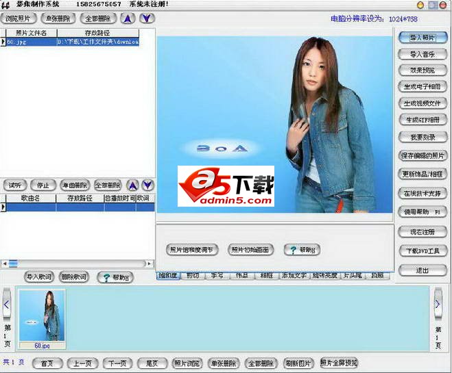 超强的照片编辑功能,使您可以绘制出您自已想要的照片,使您的照片更具个性化,是目前市场上照片编辑功能最强大的软件之一,系统还自带拍照和刻录功能,新增视频文件生成功能,生成的视频文件转化后,可以放到VCD或DVD机、手机、掌上电脑,MP4等设备上直接进行播放,新增了用户可以选择自已的背景图片,并可对背景图片进行编辑,通过此功能使您的照片可以和美丽的山水、城市风光、明星照片无缝的融合在一起(提示:此功能新增在“相框”功能栏中)。