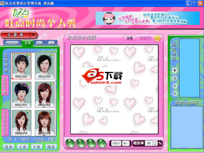 旺点时尚个人秀是中国国内第一个专业用于个人发型设计软件的软件,只要几分钟就可看到美丽的你。操作简单,方便。具体界面图如下: