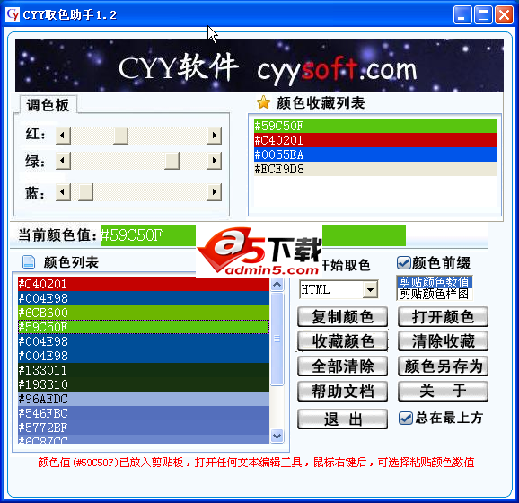 可以自动剪贴颜色数值或颜色样图,支持多种颜色数值格式