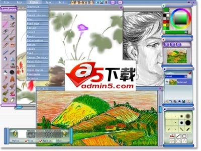 精灵画笔系列软件拥有功能卓越的各种绘画工具,不仅可以创作出与常规画法一样的作品,最有用的就是可以制作出常规情况下无法实现的作品,比如同时使用油画和水彩画的技巧,在油画中实现透明技巧等。 由于随时可以Undo,并且可以使用橡皮擦,创作国画更加得心应手,完全改变国画需要一气呵成的创作方法。