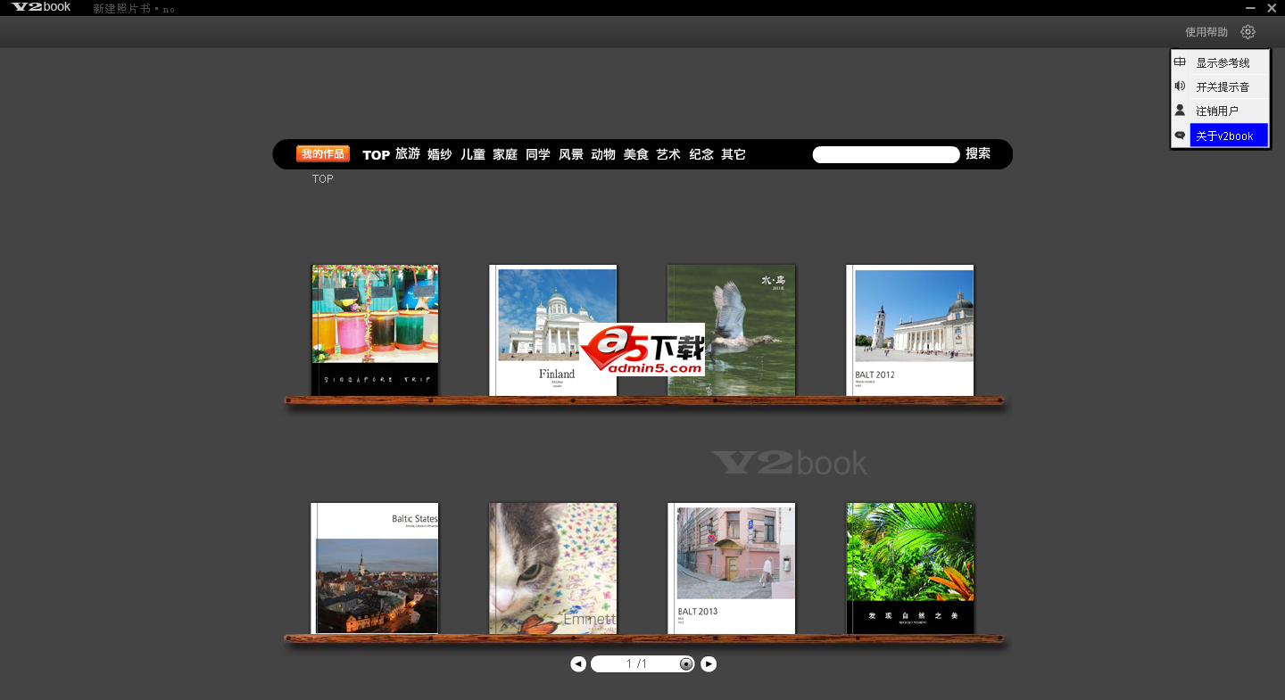 v2book精品照片书是一款能够以简单智能的方式制作你心仪的照片书的软件,专业级的效果,让你的作品呼之欲出。可以将大堆的照片,快速制作各种类别的照片书,旅游、婚纱、写真、儿童、家庭、风景、动物等等,各种模版时时更新,免费下载使用。 更可将你的作品轻松上传网络印刷成书,和家人、朋友一起分享。
